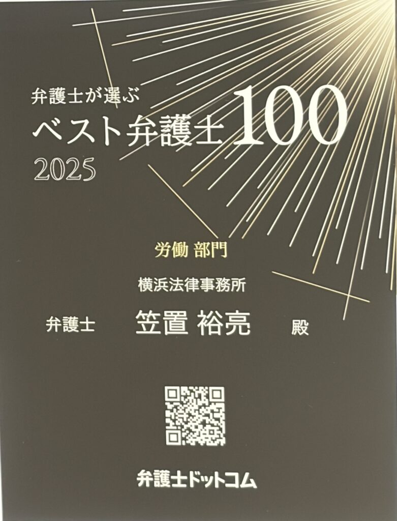 「弁護士が選ぶベスト弁護士100」2025において笠置裕亮弁護士が労働分野第7位に選ばれました(週刊東洋経済・弁護士ドットコム)